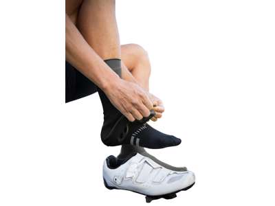 • Ensure shoe covers are pulled-up over socks and are under legwarmers to create a water-tight seal.